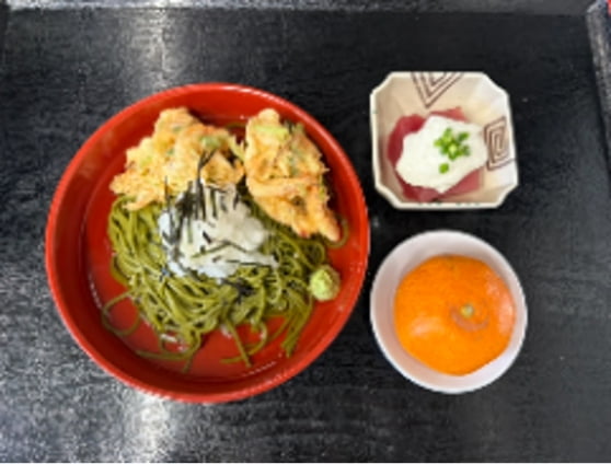 (茶そば&桜えびかき揚げ) Suruga Soba<br>(Tea Soba & Sakura Shrimp Tempura) -