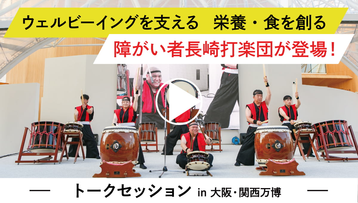 A stage presented by the Japan Nutrition Practical Science Strategy Organization (NUPS) and co-hosted by the New Inclusion Japan Association, Inc. for Persons with Intellectual Disabilities. With the aim of “turning people with disabilities into a source of light” and creating a society where no one is left behind, this program highlights initiatives that support well-being through both nutrition and cultural arts. In addition to the dynamic performance “The Expressive Life Force” by the Nagasaki Disability Taiko Drum Group Zuiho Daiko, a special dialogue between representatives of both organizations is a must-see.