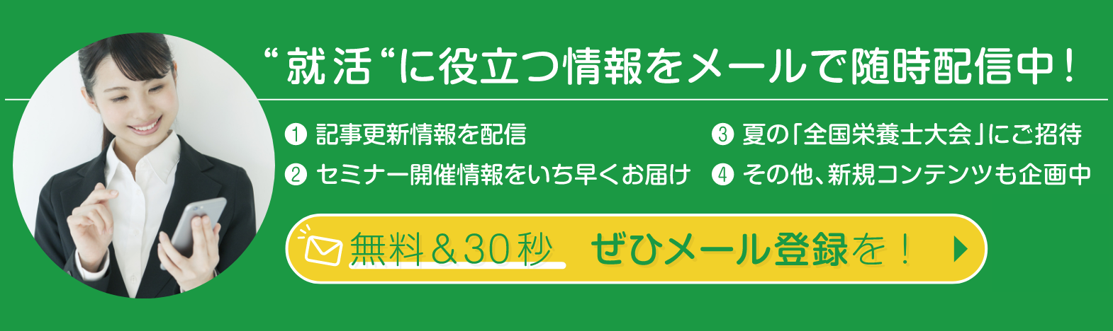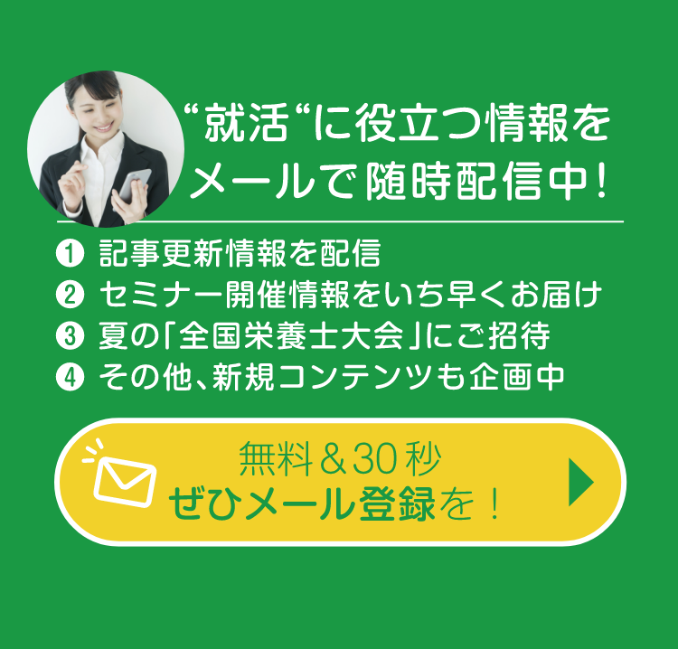 養成校学生のためのメール配信登録フォーム * 印のついている項目は、入力必須です。必ずご入力ください。 養成校学生のためのメール配信登録フォーム 1.養成校所在地(都道府県)* 都道府県を選択してください 北海道 青森県 岩手県 宮城県 秋田県 山形県 福島県 茨城県 栃木県 群馬県 埼玉県 千葉県 東京都 神奈川県 新潟県 富山県 石川県 福井県 山梨県 長野県 岐阜県 静岡県 愛知県 三重県 滋賀県 京都府 大阪府 兵庫県 奈良県 和歌山県 鳥取県 島根県 岡山県 広島県 山口県 徳島県 香川県 愛媛県 高知県 福岡県 佐賀県 長崎県 熊本県 大分県 宮崎県 鹿児島県 沖縄県 ※大学院生の方は出身校を選択 2.養成校名* 養成校名を選択してください 3.学科(学部)名* 4.学科種別* 管理栄養士養成 栄養士養成 5.学校種別* 大学 短期大学 専門学校(2年制) 専門学校(3年制) 専門学校(4年制) 大学院(修士) 大学院(博士) ※大学院生の方は現在在学している学校を選択 6.学年* 1年 2年 3年 4年 ※2025年4月時点の学年 7.氏名* 8.氏名カナ* 9.メールアドレス* 10.メールアドレス確認用* 11.生年月日* 12.興味分野 臨床栄養 学校栄養 健康/スポーツ栄養 給食管理 公衆栄養 地域栄養 福祉栄養(高齢者・障がい者) 福祉栄養(児童) ※今後の情報提供に使用します。興味のある分野をお選びください(複数回答可・変更可)。 13.個人情報の取り扱いについて* 同意して申込む・個人情報は、本会が別に公表する『プライバシーポリシー』(※1)や『利用規約』(※2)に従って適切に取り扱います。・個人情報は、セミナーや関連情報のご案内、当会各種サービス等の向上を図るための参考として使用します。・本フォームから取得する個人情報を第三者に提供することはありません。(※1)『プライバシーポリシー』(※2)『利用規約』