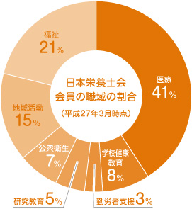 管理栄養士・栄養士が会員です。会員数はおよそ50,000人、医療、学校健康教育、研究教育、公衆衛生、福祉、フリーランス・栄養関連企業等の6つの職域に所属し、管理栄養士・栄養士活動のほか、管理栄養士・栄養士の養成、研究活動などにあたっています。