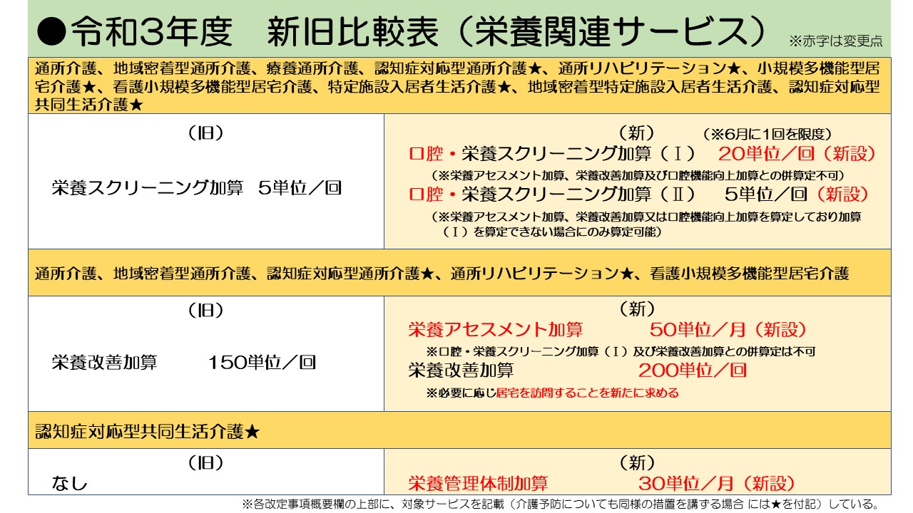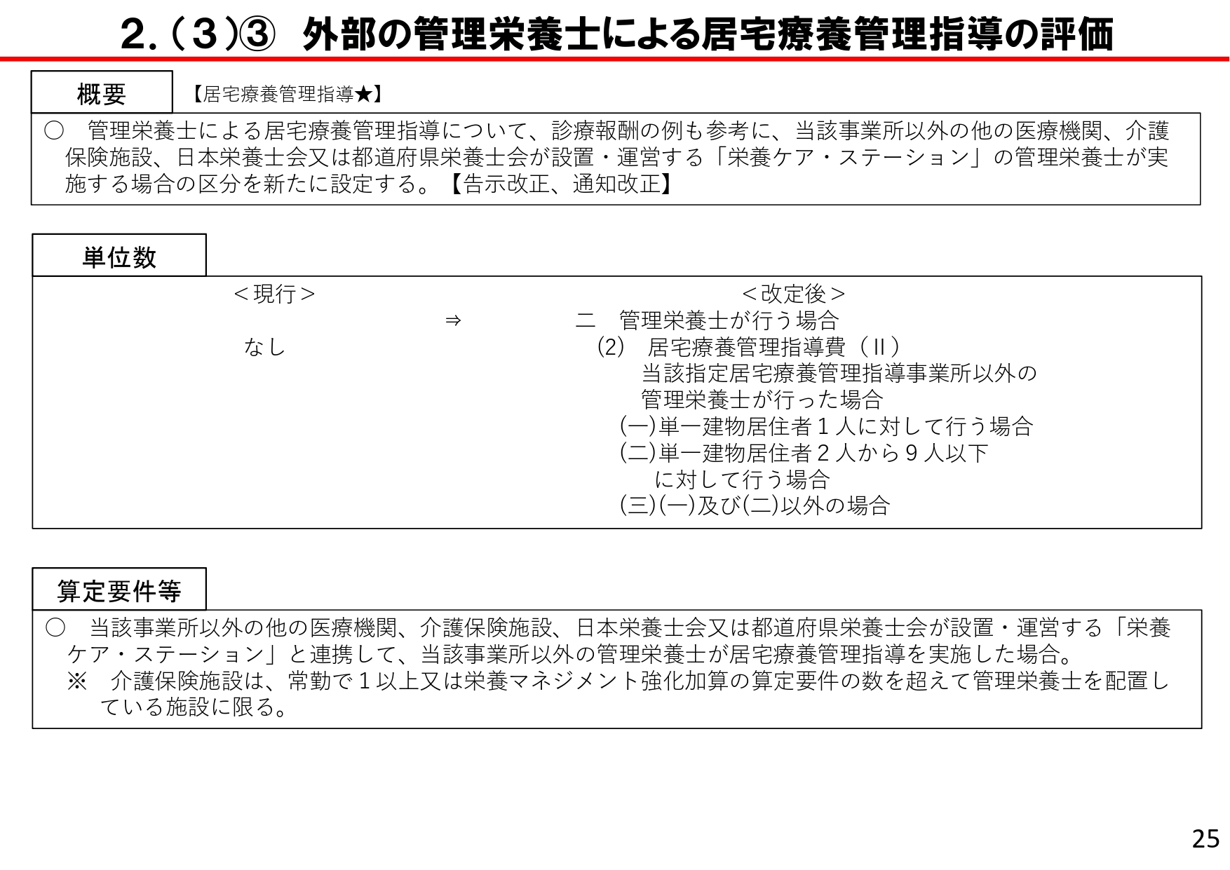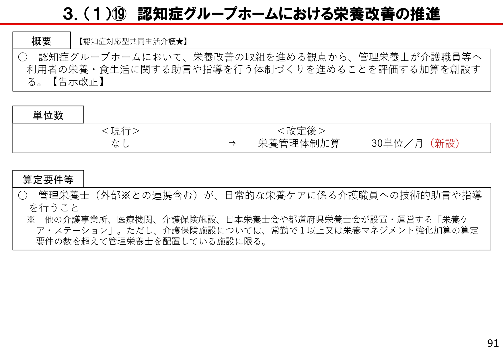 栄養政策・制度 トピックス お知らせ 2025/10/09 【診療報酬】「令和6年度診療報酬改定」厚生労働省による疑義解釈資料(vol.6) お知らせ 2025/01/06 【診療報酬】「令和6年度診療報酬改定」厚生労働省による疑義解釈資料(vol.5) お知らせ 2024/06/11 【診療報酬】「令和6年度診療報酬改定」に関する質問と回答まとめ お知らせ 2024/06/18 【介護報酬】「令和6年度介護報酬改定」に関する質問と回答まとめ お知らせ 2024/05/23 【障害福祉サービス等】「令和6年度障害福祉サービス等報酬改定」に関する質問と回答まとめ 管理栄養士・栄養士のみなさんへ、栄養政策・制度に関する情報等を、日本栄養士会からメールでお届けします。 メール登録 メール登録 ✕ 会員の方 メールアドレスを既に登録されている方には、日本栄養士会からのお知らせや研修会、ホームページなどの最新情報がメールで送られます。未登録の方は、マイページからご登録ください。 マイページ 会員以外の方※ 会員以外の方は、メール登録をすると、日本栄養士会からのお知らせや各種情報がメールで送られます。 メール登録 ※入会すると会員限定の情報や特典を受けることができます。入会案内はこちら 診療報酬・介護報酬・障害福祉サービス等報酬 診療報酬 NEW 令和6年度診療報酬改定のポイント 令和4年度診療報酬改定の情報 介護報酬 NEW 令和6年度介護報酬改定のポイント 令和3年度介護報酬の改定の情報 障害福祉サービス等報酬 NEW 令和6年度障害福祉サービス等報酬改定のポイント 栄養政策・制度に関するお役立ちリンク集 国の制度や方針から人員の配置基準など、管理栄養士・栄養士の業務に必要な情報を掲載しています。 制度・指針・調査・文献検索 危機管理 関連法規 配置規定