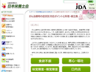 がん治療中の副作用の症状別に、献立の工夫と対応のポイントとともにレシピをご紹介しています。※専門分野別人材育成事業のがん分野におけるモデル研修への受講者から提出されたものより一部を掲載しています。提供施設名については承諾が得られた施設のみ表示しています。参考にされる場合、献立等の詳細をご覧いただき、実際の症状をよく検討の上、ご活用ください。