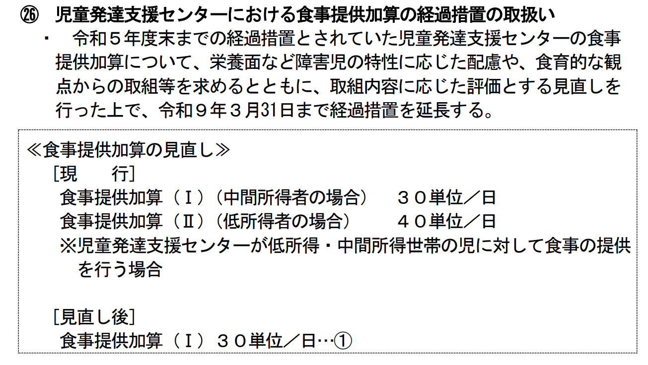 児童発達支援センターの「食事提供加算」も経過措置が延長