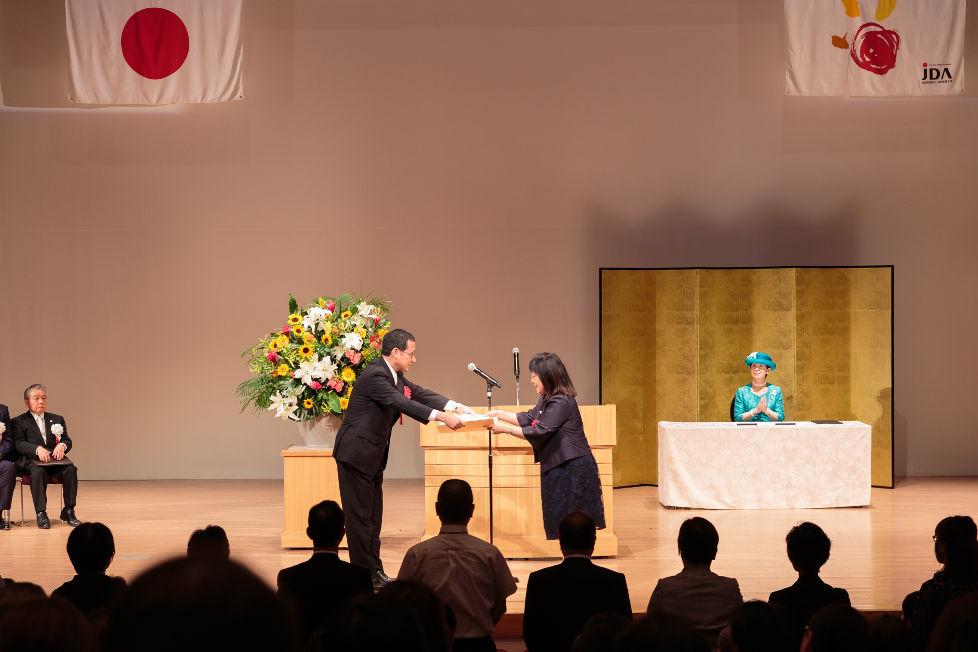 公益社団法人日本栄養士会表彰では、栄養改善功労賞「萩原賞」に鍜治木いつ子さん、栄養改善奨励賞「森川賞」に北林絋さん、会長表彰「50年・25年業務貢献者」に合計910名が表彰され、また、神奈川県、京都府、鹿児島県の3栄養士会に感謝状が渡されました。受賞者を代表して竹田すずよさんが登壇し、「受賞できたのは上司や同僚の励ましの賜物です。これからも仲間とともに栄養の発展に寄与していきたいです」と謝辞を述べました。