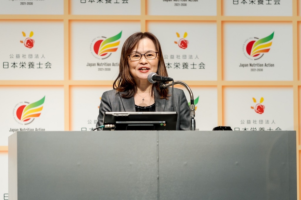 これを受けて、日本栄養士会の鈴木志保子副会長が、「日本の栄養政策を推進する管理栄養士・栄養士と日本栄養士会」を紹介。日本では管理栄養士・栄養士が行政、医療、福祉、学校、社員食堂、研究機関、さらには地域にも配置されていることを冒頭に説明し、日本が1926年に世界に先駆けて栄養の専門家である「栄養手」を誕生させ、1945年には職能団体である「大日本栄養士会(現:日本栄養士会)」を創設したこと、戦後間もなく栄養士法、栄養改善法といった栄養に関連する法整備も行い、1961年には国際栄養士連盟に加盟したこと等、管理栄養士・栄養士が日本の栄養政策を推進させてきた経緯を詳説しました。