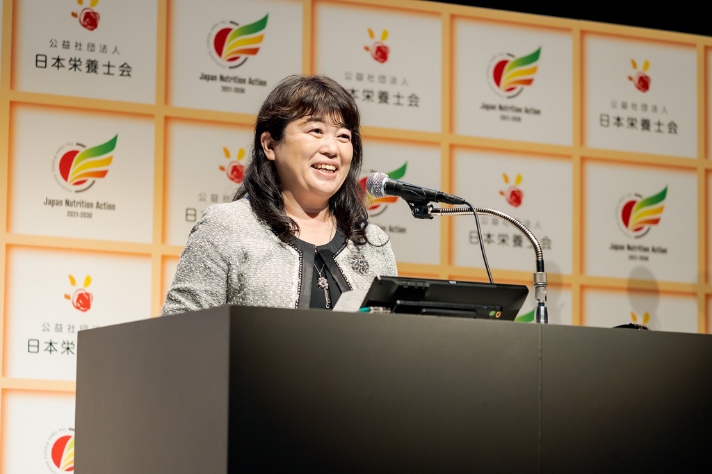 近年では、東日本大震災を機に、災害時の食と栄養の支援を担う「日本栄養士会災害支援チーム(JDA-DAT:The Japan Dietetic Association-Disaster Assisstance Team)」を結成したことや各地域に認定栄養ケア・ステーションを整備したこと、さらには国民と栄養をつなぐ日として8月4日を「栄養の日」と制定したこと等、より国民にとって身近で頼れる存在となるべく活動範囲を広げていることを紹介しました。そして、「日本栄養士会は、日本の栄養100年で培ってきた知見や経験を活かして、諸外国の栄養改善にも大きく貢献していきます」と、明言しました。