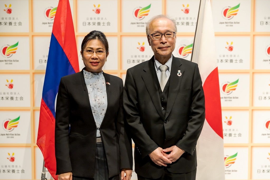 「栄養不良の二重負荷は全世界で発生しており、特にアジア・アフリカで深刻な事態になりつつあります。新型コロナウイルスの影響で世界の低栄養者は増え、十分な栄養が摂取できない人は、2019年時点での30億人から、さらに1億4100万人も増えたと推計されています。食糧不足による栄養不良が広がる一方で、富裕層では食事の欧米化による過栄養、そして栄養政策の不備や研究・教育の遅れなどが見られます。そのようななか、先日、ラオス人民民主共和国(以下、ラオス)から正式な依頼があり、ラオス大使館に招かれ、大使や前大臣、関係者の方々と議論を重ねました。これから日本栄養士会はラオスの栄養改善に向けて、その基盤作りを支援をしていくと決め、準備をスタートさせています」