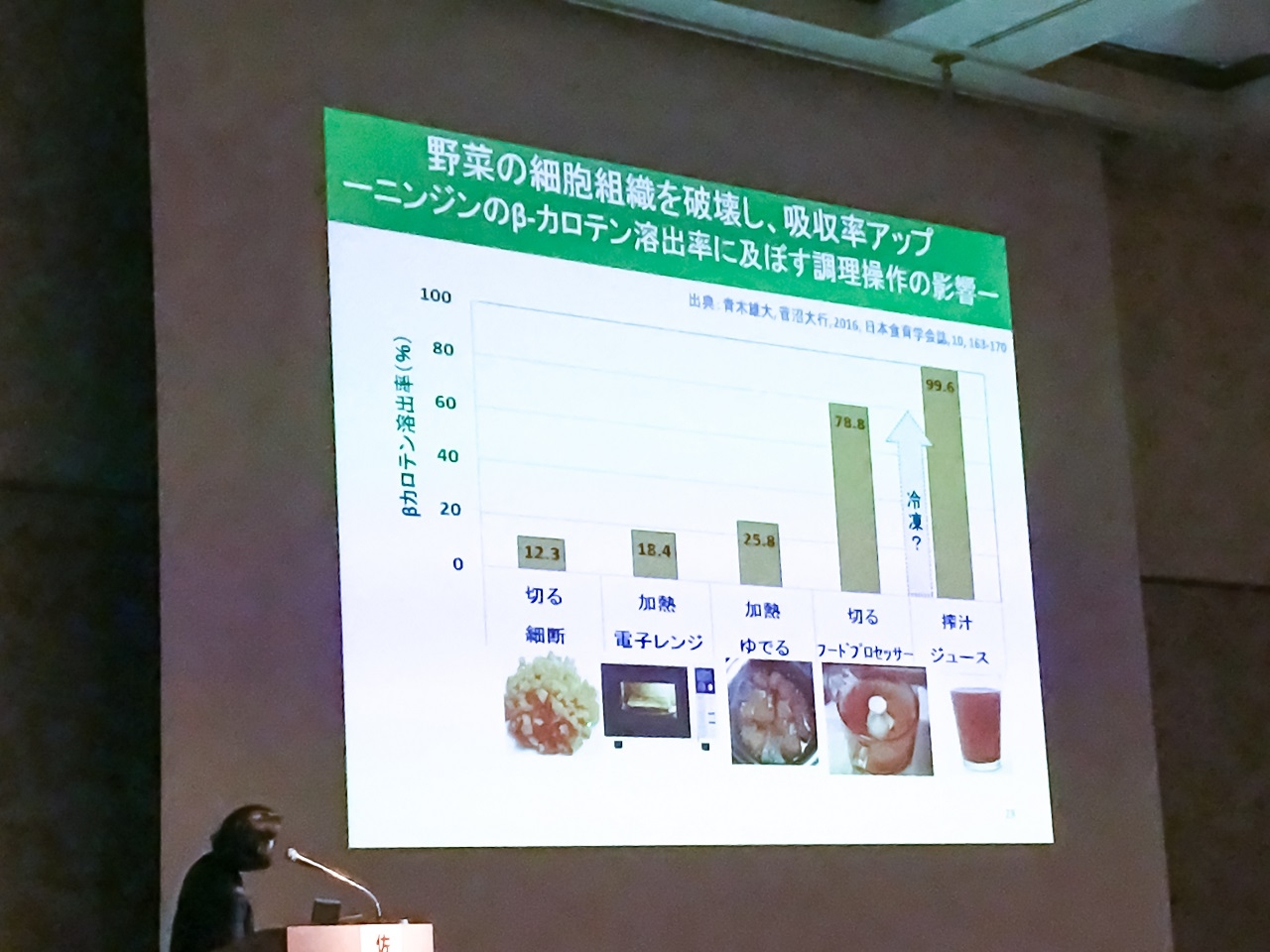 講演では、佐藤氏から野菜の栄養を摂るコツについて、具体的なアドバイスが示されました。