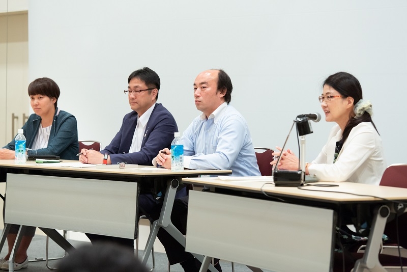 講師:勝野美江氏(内閣官房東京オリンピック・パラリンピック推進本部事務局参事官)、玉造洋祐氏(農業生産法人有限会社ユニオンファーム)、濱田納睦氏(北海道士別市教育委員会合宿の里推進室ホストタウン統括監)、松本恵氏(日本大学文理学部体育学科准教授・公認スポーツ栄養士)