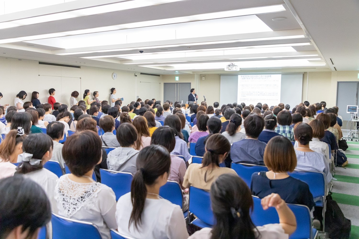しかし、実際に食育を担う立場に立ってみると、管理栄養士・栄養士の中には、「具体的に何をすればよいのかわからない」、「毎年似たような内容の授業になってしまう」、「周囲の協力が得にくい」と困惑している人も少なくありません。その悩みの数を示すかのように、講演会場は部屋の外にまで参加者があふれるほど。野口氏の言葉を逃すまいと、懸命にメモを取る姿が目立ちました。