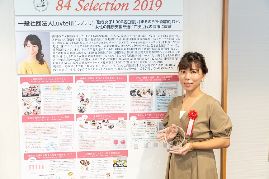 一般社団法人Luvtelli(以下、ラブテリ)は2009年に発足し、予防医療の中でも母子の健康に注力して、妊娠前~出産後の女性と次世代の健康支援を目的に活動しています。今回は、これまでの活動「まるのうち保健室」、「京都保健室」や調査報告書「働き女子1,000名白書」などが評価され、受賞となりました。