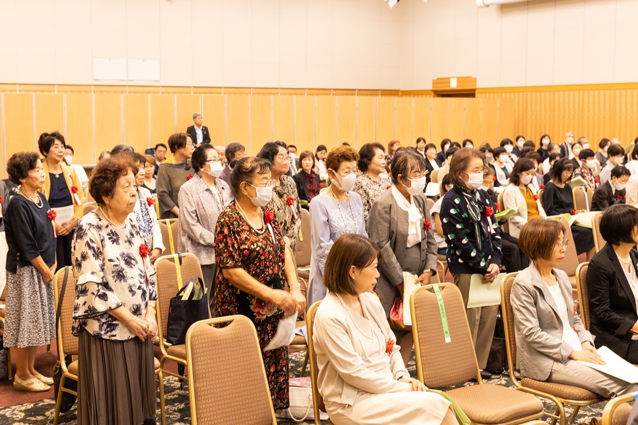 最後に、日本栄養士会阿部絹子常務理事の閉会の挨拶により閉会。閉会後は、表彰状を手に記念撮影をする方々でにぎわい、晴れやかな笑顔とともに都道府県栄養士会の垣根を超えた活発な交流も見受けられるなど、会場は、対面開催ならではの和やかな雰囲気に包まれました。管理栄養士・栄養士の皆さんも受賞を目指し、研鑽に励んでいきましょう。