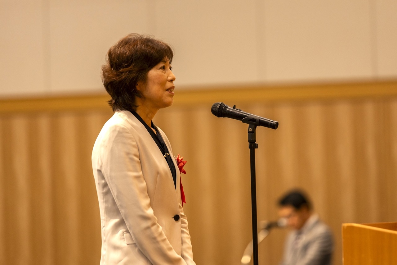 今や世界一の長寿国家となった日本。未来に向けて健康で日々の生活を充実させていくために、取り組まなければならないのが環境問題だと提起。先進20か国を対象とした国際的な調査では日本は2番目に人にも地球にも健康な食事をしていると評価されたことを紹介しました。こうした地球にも体にもやさしい食事こそ、これからの食事のあり方であり、今日までの管理栄養士・栄養士の努力が成し遂げた世界でもまれにみる成功例だと述べました。こうした管理栄養士・栄養士の努力に感謝するとともに、元気で長生きをして、これからも人々のために尽くしていただければありがたいと締めくくりました。