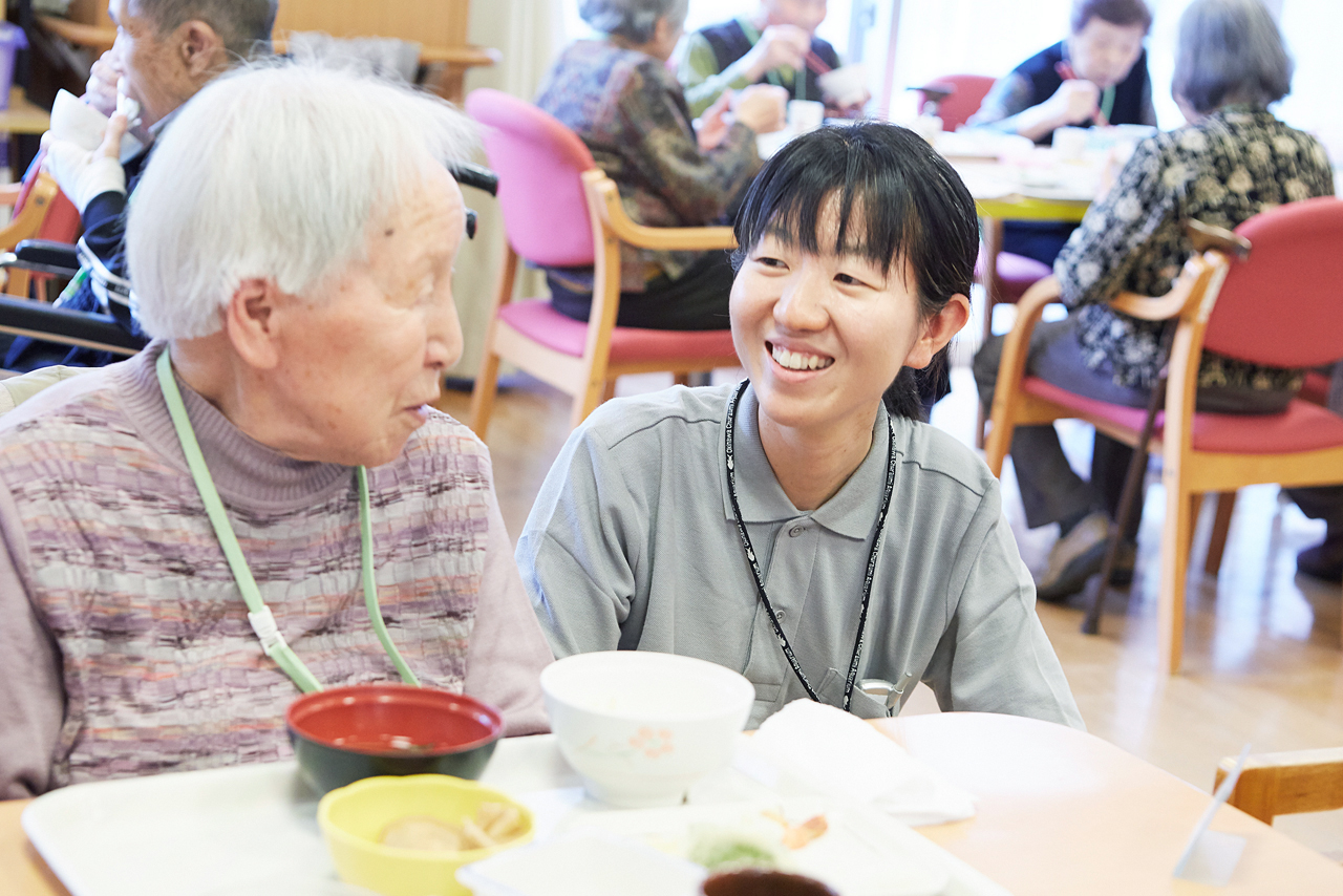 「食事に関する多職種での検討の場は3種類あります」と話す市川さん。1つ目は、管理栄養士、看護師、介護スタッフの代表者が出席する月1回開催の栄養管理委員会。2つ目は、ケアマネジャー開催の会議。施設長をはじめ、ご家族や関係職種が出席する、サービス担当者会議や看取りカンファレンスがあります。3つ目は、"問題のある時に適宜話し合う"です。状態の変化や急変も多い高齢者が利用する福祉の現場だからこそ、関係スタッフとの報告・連絡・相談による対応を日々重ねながら、施設利用者にとってのより良いケアを目指しているのです。また、「医療面に関しては、嘱託医やナース、本人の嗜好についてはご家族から、普段の生活の情報はユニットリーダーや介護スタッフ、ケアマネジャーから、入居時や病院からの退院時の情報は生活相談員から、食事の提供方法については厨房から助言をもらっています」。と、各々の専門の角度からの意見をヒアリングして検討することも少なくないと言います。