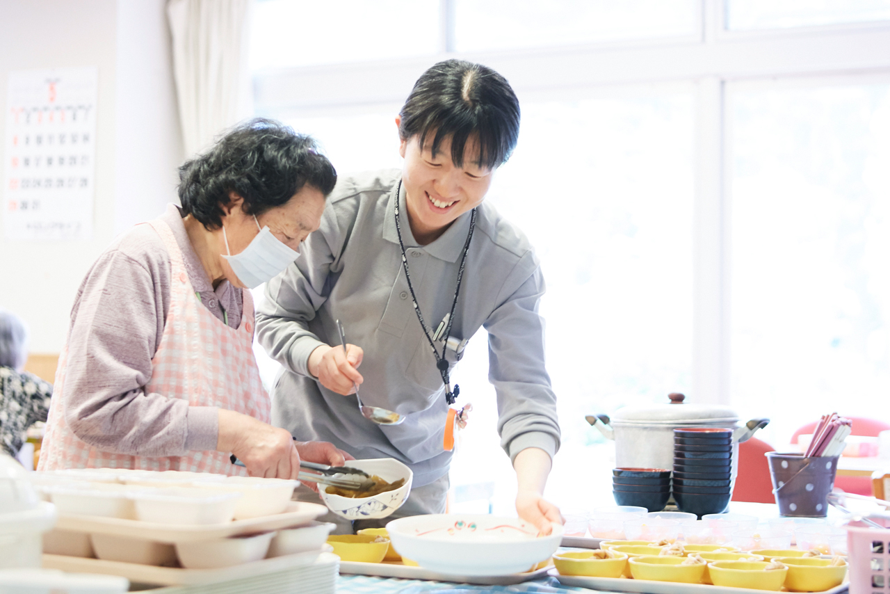 10年前は、神奈川県の病院で治療食の調理や給食管理を行っていたという市川庸子さん。現在、勤務している「特別養護老人ホーム 金沢弁天園」のオープンを機に地元である茨城県に戻り、現場での活躍はもちろん、福祉事業部の難易度の高い研修会や国の事業にも参加し、事業部のなかでも次世代エースとして期待が寄せられています。