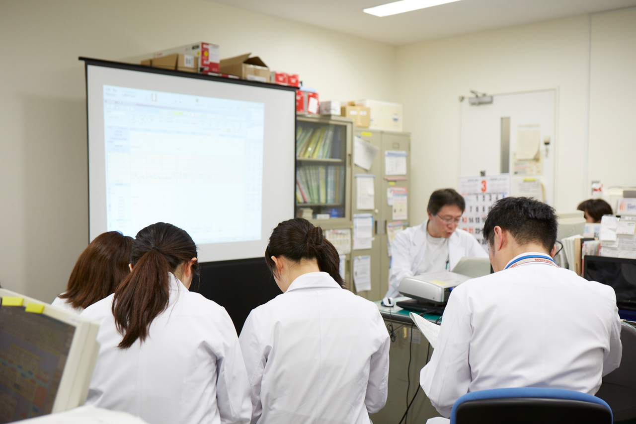 横浜医療センターは510床を有する国立の医療機関で、緊急入院の患者をはじめ、日々、患者の出入りが絶えない病院です。急性期総合病院のため疾病もさまざま、糖尿病などこれまでも栄養管理が不可欠とされていた疾患はもちろん、がん患者に対する支援にも取り組んでおり、治療の一翼を担う栄養管理が行われています。このため、医師・看護師・薬剤師たちとの連携は不可欠です。日常的にカンファレンスを開き、情報の共有を図っています。
