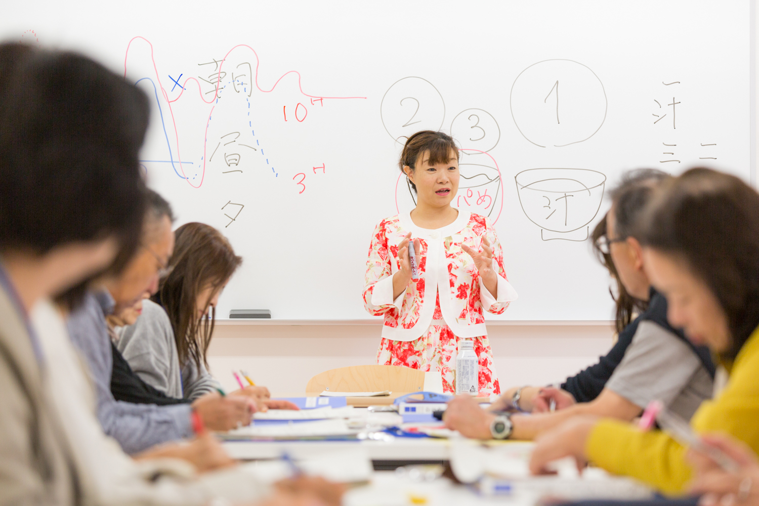 大学での仕事の傍ら、至学館大学と包括協定を結んでいる大府市の「おおぶ元気創造大学」、刈谷市の「かりやヘルスアップ大学」では市民講座を担当しています。シニア世代の受講生がほとんどで、健康意識が高く、質問もたくさん上がります。講座では、大学での研究結果を活かし、手軽においしくできる調理法を伝えると、「さっそく明日から試してみます!」とすぐに行動されることがシニア受講生の特徴だそうです。