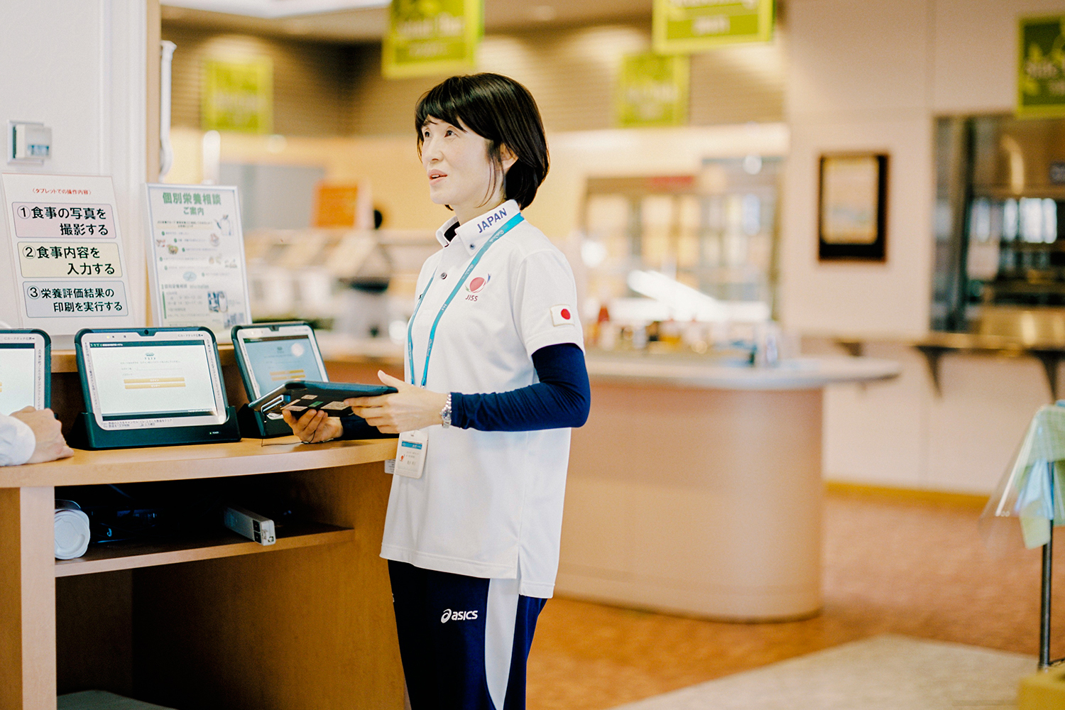 リオデジャネイロオリンピック・パラリンピックの選手たちを、栄養管理の面から支えてきた亀井明子さん。勤務先の国立スポーツ科学センター(Japan Institute of Sprts Sciences:JISS)は日本のスポーツ医・科学研究の中枢機関で、最新施設や器具が揃い、各分野の研究者、専門家が連携して、日本の国際競技力の向上のための支援をしています。JISSでの亀井さんは研究員かつ管理栄養士・公認スポーツ栄養士として、アスリート個人に対して、また、競技団体、日本選手団といった規模別に、ほか11名の栄養スタッフとともに栄養サポート活動をしています。競技大会では、選手たちに同行しなくてもテレビの画面越しにその勇姿を見て、「○○選手は今、52kgのベスト体重で試合に臨めているな」、「△△選手は現地で食事がうまくとれなかったみたい」と、亀井さんは選手たちの体重や体調を判断できるといいます。