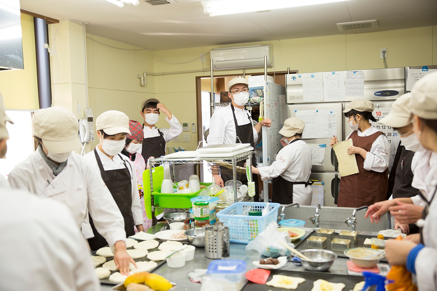 モンソレイユの店員は20代の女性が多く、とてもにぎやか。それだけにおしゃべりもケンカも多発します。村上さんは製パン作業の指導だけでなく、管理栄養士として健康上の不安や悩みに応えたり、ケンカの仲裁に入ったり、障がいの程度にかかわらず望ましい人間関係ができるよう助言をしたりと、皆が気持ちよく働き続けられるように気を配ります。「もう辞めたい!」という店員には、あえて笑顔で「お疲れさま!」と手を振る村上さん。引き留めてほしくて「何なのそれー!」と村上さんの腕をつかんで訴える店員の姿。皆が、まさに和気あいあいと働いているのです。
