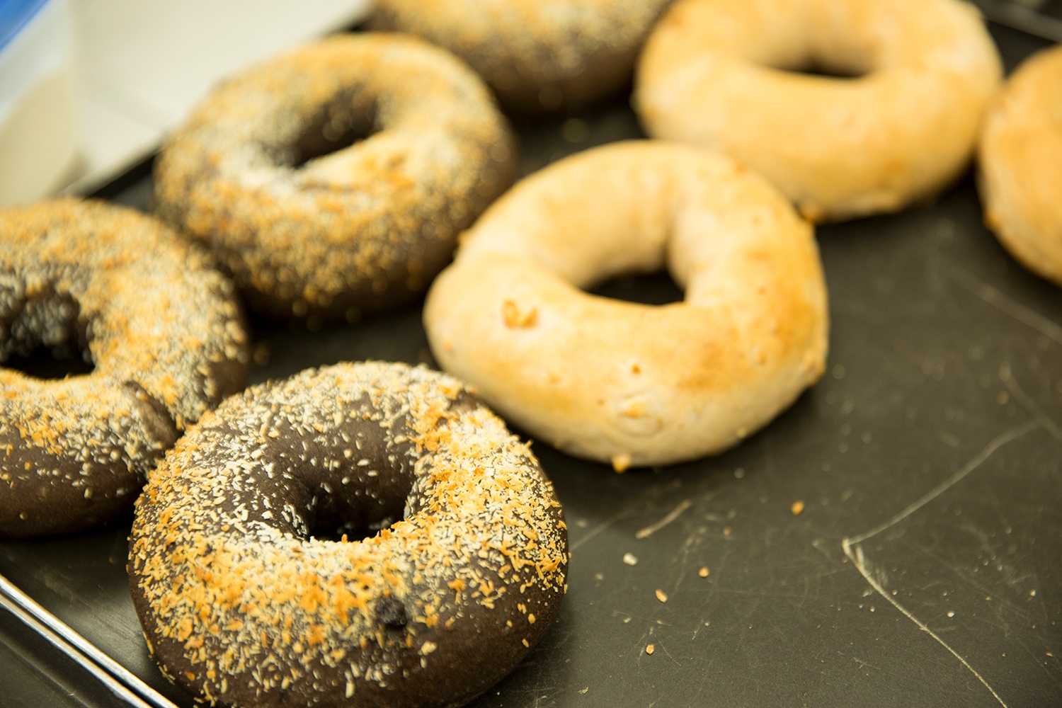 店内にはパンが焼きあがる香ばしい匂いが立ち込め、店員たちができあがったパンを並べていきます。国産小麦を使ったチョコベーグル、レモンベーグル、クルミベーグル、カボチャベーグル、木の実のパン、カンパーニュ、ツナのフォカッチャ、オリーブのフォカッチャ、デニッシュ、ライ麦食パンなどのさまざまなパン。季節によってラインナップも変わります。前職のベーカリーカフェの経験を活かし、村上さんは店員たちとともに、就労継続支援(B型)事業所であっても「パン屋」として成立するための品ぞろえを考え、皆で焼き上げる毎日です。
