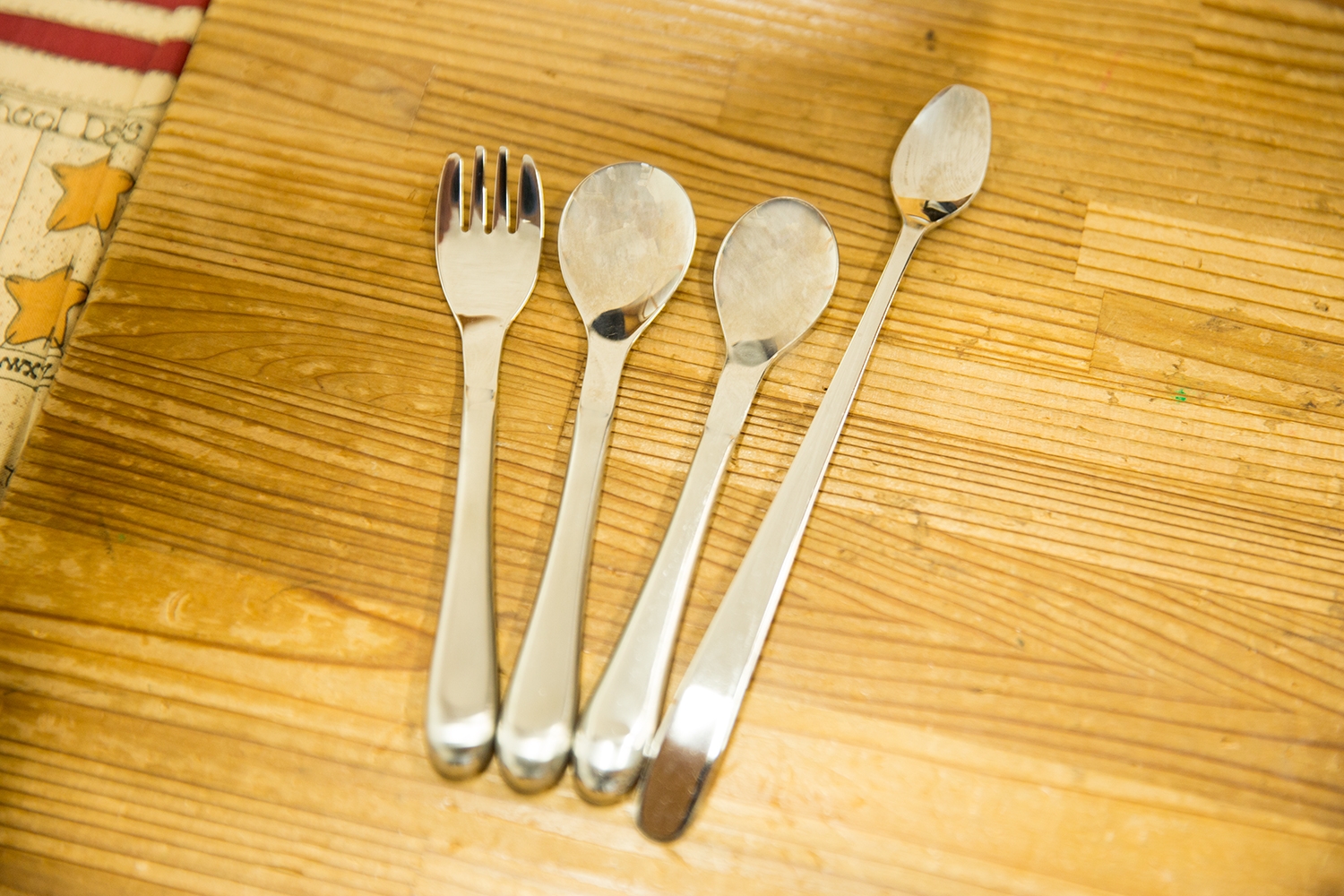 「あったらいいな!」をカタチにするのも得意。アレルギーがある子もない子もみんなが楽しくおいしく味わえる献立本『ごちそうさま!またつくってね!から生まれたレシピ集~五感をはぐくむ魔法のレシピ~』(佐井かよ子さんと共著)を自費出版したり、赤ちゃん・幼児の食べやすさを追求したスプーン&フォークを有志たちと開発し、自ら販売したりしています。