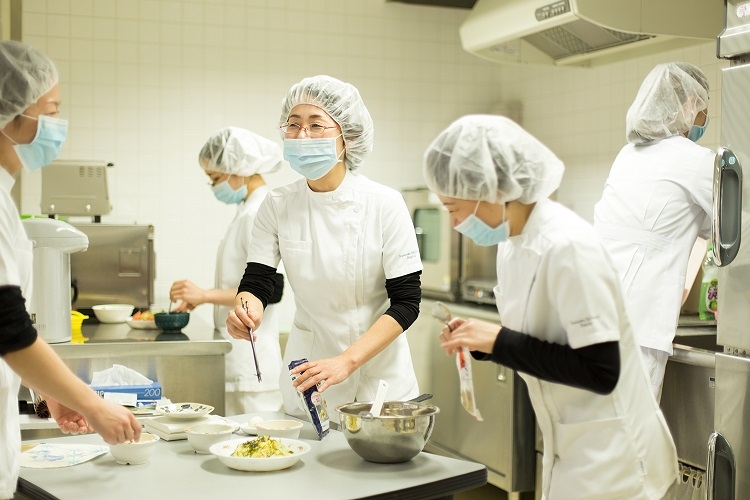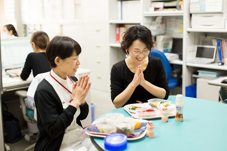 栄養管理室の事務所の脇にあるテストキッチンでは、八幡さんたち管理栄養士が「こうしたら、患者さんがもっとおいしく食べられるのでは?」というアイデアを出し合い、より治療に貢献できる"新たな料理"が生まれていきます。
