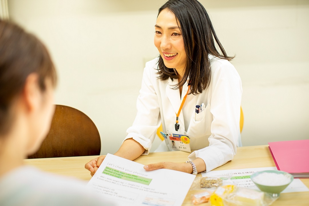 最近では、外国人向けの外来栄養指導が増えてきました。南大和病院の近くには、多国籍の外国人が多く住む団地があり、病院の方針で外国人の患者さんを積極的に受け入れるようになったためです。スペイン語やカンボジア語を話す患者さんも少なくありません。