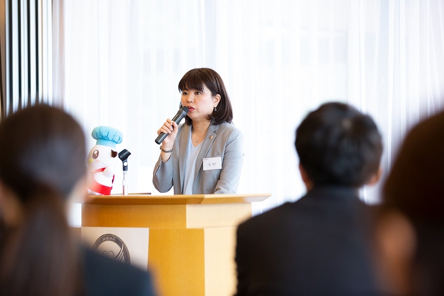 室長という肩書きの他、迎さんにはもう1つの顔があります。同社に約2,700人在籍している管理栄養士・栄養士の自主組織「シダックス栄養士会」の会長を務めています。シダックス栄養士会は、迎さんが入社する以前、約30年前に先輩社員の石関ウメさん(故人)が管理栄養士・栄養士の将来を考えて発足させた組織です。自ら学びたいと考える社員が自由に集まって、研究テーマを決めて研究活動をし、年に1回発表し合い、それぞれの業務改善や成果につなげています。