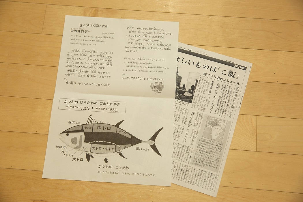 掛村校長が「信じられないような行動をする」と表現するのは、口野さんが発行している給食メモ「きゅうしょくだいすき」を作成したり、授業を行ったりするための、取材をはじめとする情報収集のことです。「きゅうしょくだいすき」の内容は、給食委員会が給食の時間に校内放送で伝えると共に、各クラスにも1枚ずつ配布され、担任の先生から説明されます。説明の仕方はそれぞれのクラスの先生に任せています。
