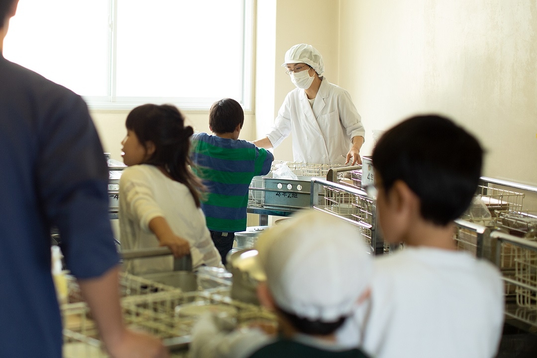 全校遠足で給食がない日には、校長先生に外出の許可をもらって、にんじんの収穫から市場での出荷まで同行をさせてもらったことも。農作物だけでなく、県内の鴨川市で大潮の日にヒジキ刈りを見せてもらったり、イベントに出展していた鹿児島県のかつお節製造業者に声を掛けて地元でのかつおの食べ方を詳しく聞き出したり。台風で稲が倒れたと聞けば、田んぼに出向いて現場の状況を確かめ、かぶが飛んでしまった話を聞けば知り合いに電話を掛けてみる。悪天候でいつも通り生産されないことを、また、悪天候であっても給食用に作物を育ててくれる人がいるということを、自分たちのすぐそばで食べ物がどんな風につくられているかを給食メモや授業、給食の時間の関わりをとおして子どもたちに伝えていきます。