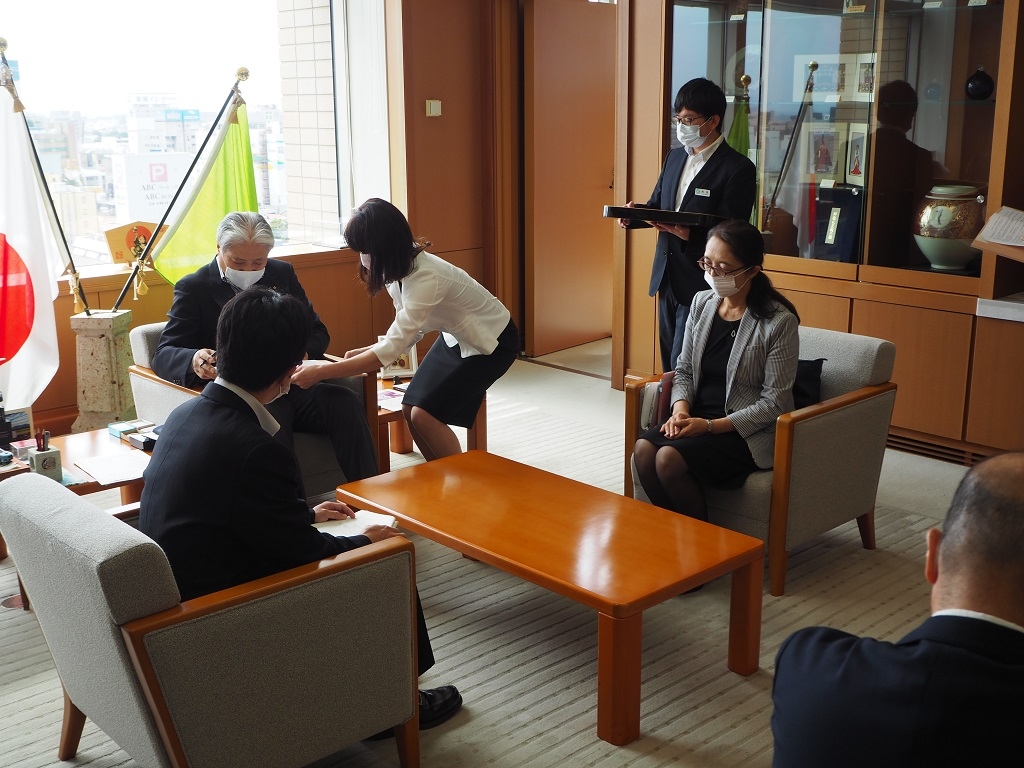 栃木県栄養士会や県庁内の他部署・他課との連携の末、2020年9月24日(木)に締結式を執り行いました。当日はJDA-DATが保有する災害支援医療緊急車両(JDA-DAT号)も披露されました。この車はキッチンボックスを搭載しており、災害時に被災地に入り調理をすることができるものです。報道陣にも公開されたことで、県民に広く知られる機会となりました。