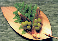 両端に衣をつけ、中温の油で船形の籠に揚げる。 |
