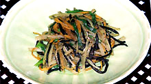 フライパンに植物油を熱し、大根皮、にんじん、ひじきを加えて炒める。やや火が通ったら、出し汁を加えて炒め煮し、水分がなくなったら、みりん、砂糖、薄口しょうゆを加える。 |