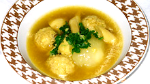 煮込み鍋にコンソメキューブと水を入れる。鶏団子を加えて火を通し、鶏団子を取り出す。酒とかぶを加えて、かぶに火が通るまで弱めの中火でコトコトと煮る。 |