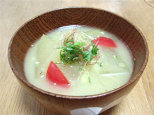とうがんとトマトをたっぷり使った、具だくさんの汁物です。