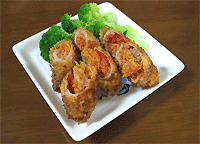 小麦粉をまぶし、とき卵にくぐらせます。 |