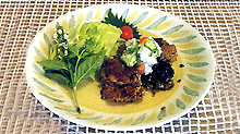 お皿に4を盛り、5をかけてレタスを添える。 |