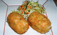 小麦粉、とき卵、パン粉の順につけて、揚げ油で揚げる。 |