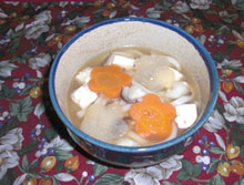 分量分の汁を別鍋に移して、Dの具材を入れさらに軟らかく煮る。最後に、かたくり粉を同量の水で溶いたものでとろみをつける。 |