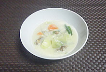 @が沸騰したらあくを取り、固形コンソメで味を付ける。 |