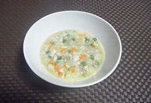 ホワイトルウを溶かしながら足し、野菜が軟らかくなるまで煮込む。 |