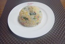 ごはんを加え、具材と混ざったら溶き卵を加えて炒め、塩、こしょうで味を調える。 |