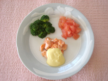 ブロッコリーは軟らかく茹で、食べやすい大きさに切る。 |