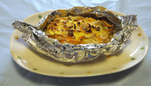アルミホイルを適当な大きさに切り、その上に魚を置き、@の野菜を魚の上にのせて残りのマヨネーズをかけ、パン粉をふって包み、160℃〜170℃のオーブンで20分くらい焼く。 |