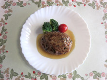 ハンバーグを皿に盛り、あんをかけ、ブロッコリーとトマトを添える。 |