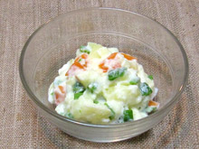 軟らかくなったら鍋のお湯を捨て、火にかけて水分を飛ばし、熱いうちにつぶして、細かく切ったチーズを混ぜて冷ましておく。 |