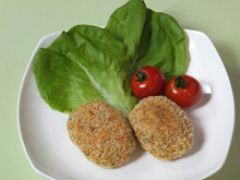 皿にコロッケを盛り付けて、サラダ菜、ミニトマトを添える。 |