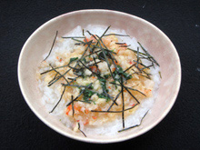 器に全がゆを盛り付け、その上にCをのせ、みつばと刻みのりを散らす。 |