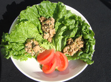 器にグリーンリーフをひき、その上に納豆そぼろをのせて トマトを添える。 |