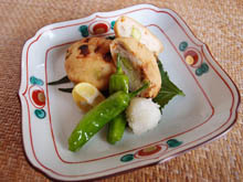 器に青しそを敷いてDを盛り、だいこんはおろして、かぼすと一緒に添える。 |